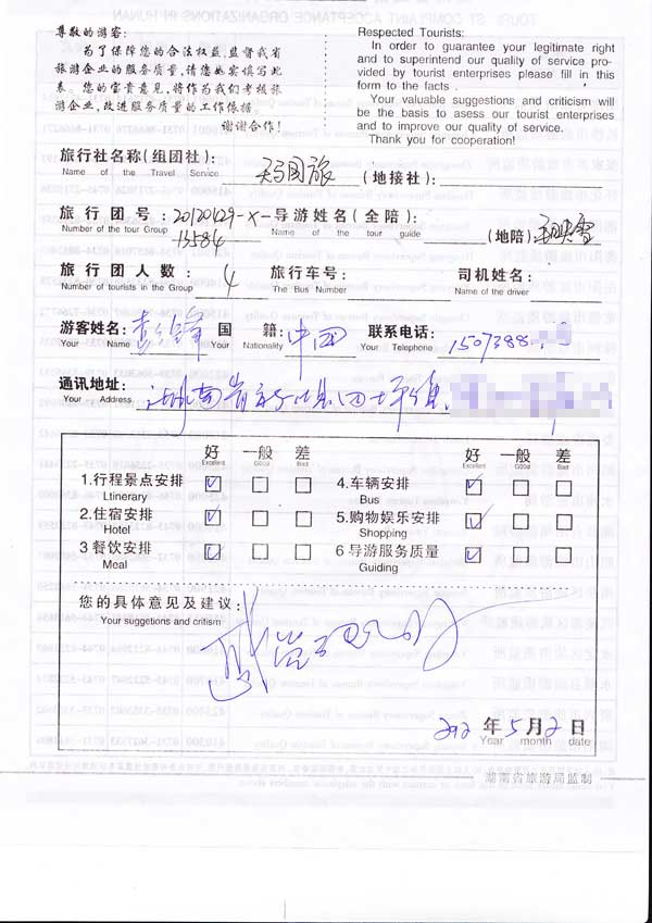 我们在填写反馈扫描时,将游客的姓名及联系方式做部分处理,全力保障您的个人隐私。
