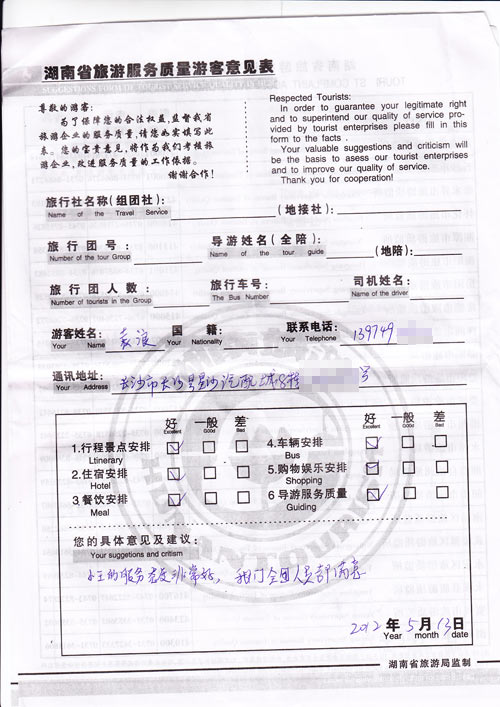 每一条反馈意见均为游客参加我们的团队后的真实填写,其内容真实有效。