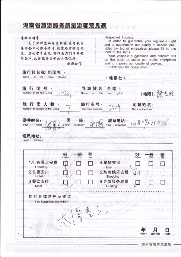每一条反馈意见均为游客参加我们的团队后的真实填写,其内容真实有效。