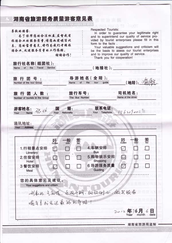 游客反馈扫描图: