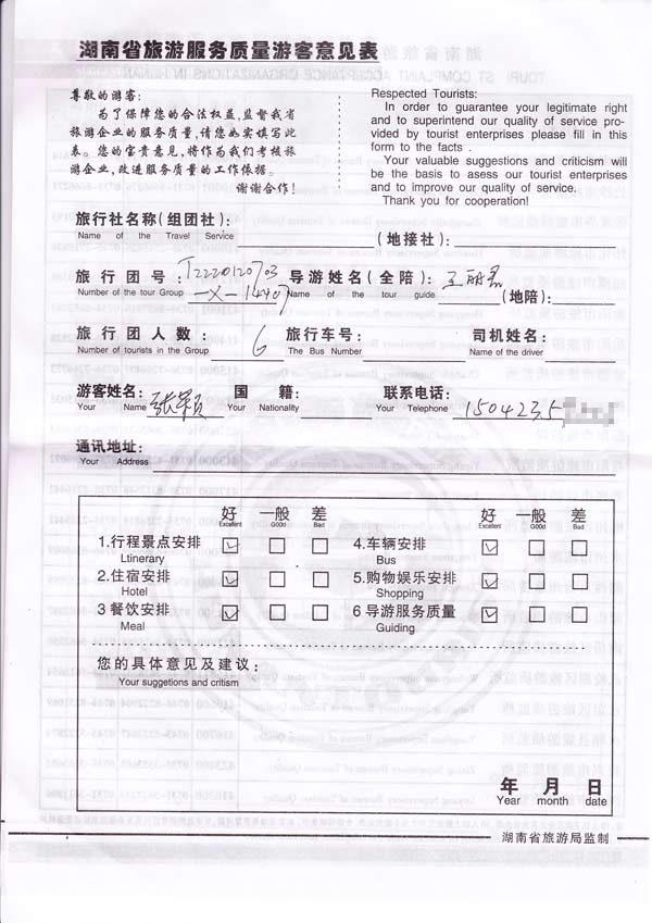 我们在填写反馈扫描时,将游客的姓名及联系方式做部分处理,全力保障您的个人隐私。