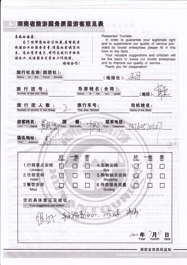 每一条反馈意见均为游客参加我们的团队后的真实填写,其内容真实有效。