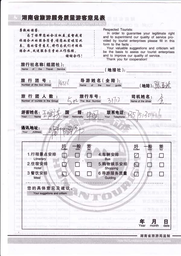 我们在填写反馈扫描时,将游客的姓名及联系方式做部分处理,全力保障您的个人隐私。