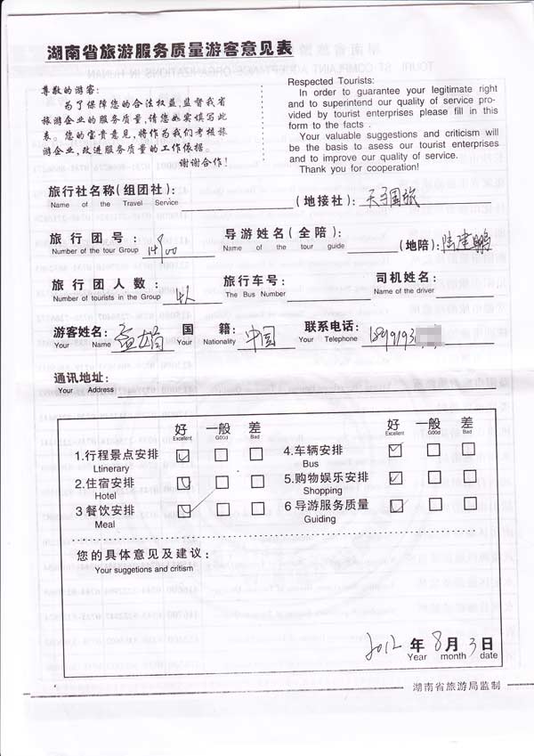 我们在填写反馈扫描时,将游客的姓名及联系方式做部分处理,全力保障您的个人隐私。
