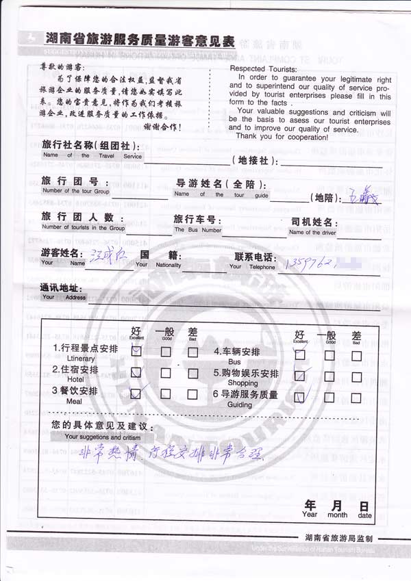 每一条反馈意见均为游客参加我们的团队后的真实填写,其内容真实有效。