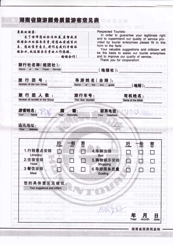 每一条反馈意见均为游客参加我们的团队后的真实填写,其内容真实有效。