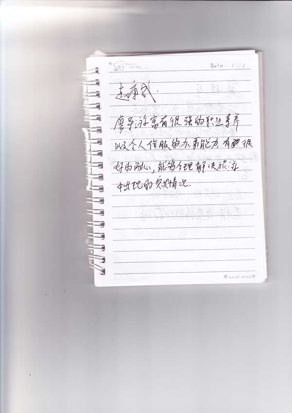 游客反馈扫描图:
