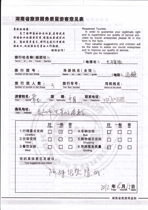 每一条反馈意见均为游客参加我们的团队后的真实填写,其内容真实有效。