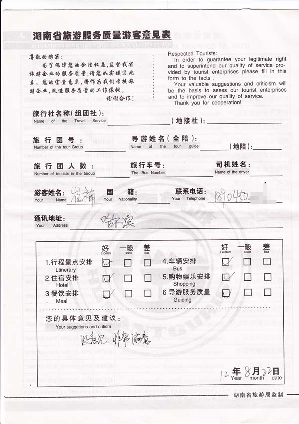 我们在填写反馈扫描时,将游客的姓名及联系方式做部分处理,全力保障您的个人隐私。