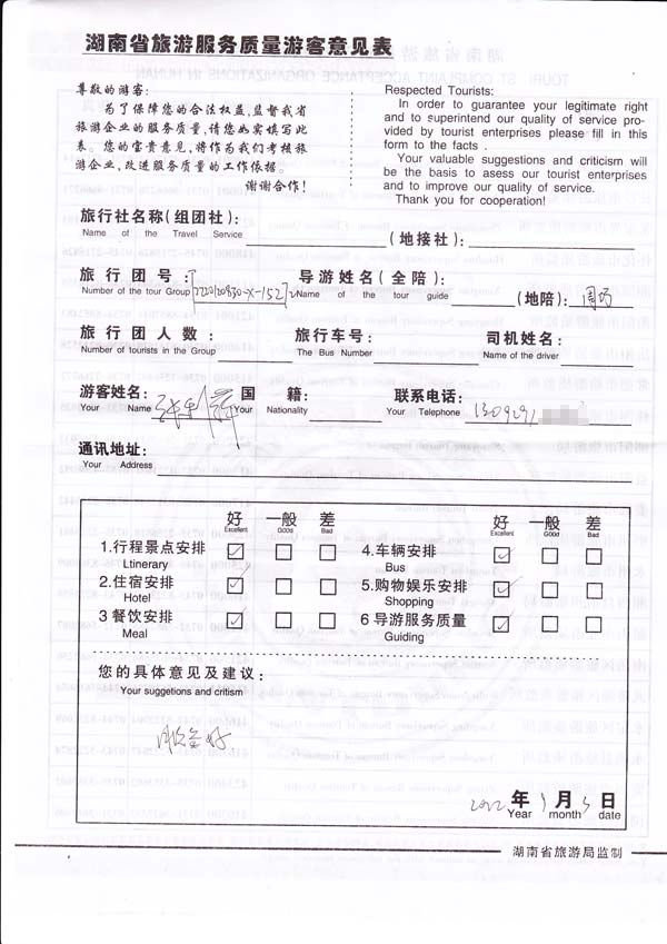 每一条反馈意见均为游客参加我们的团队后的真实填写,其内容真实有效。