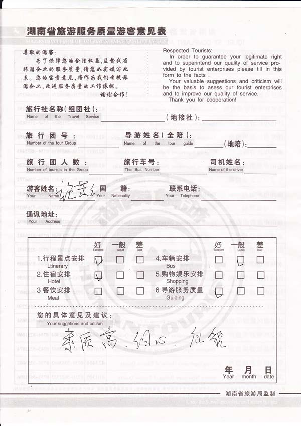 每一条反馈意见均为游客参加我们的团队后的真实填写,其内容真实有效。
