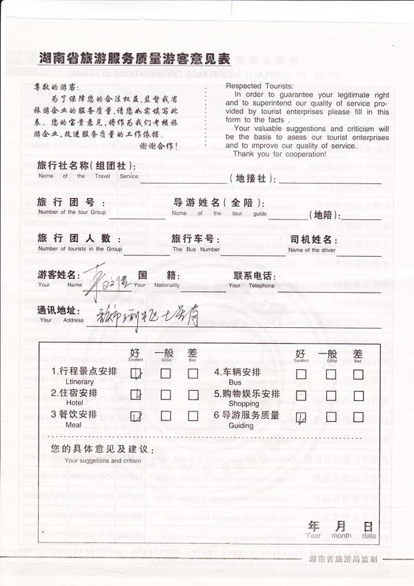游客反馈扫描图: