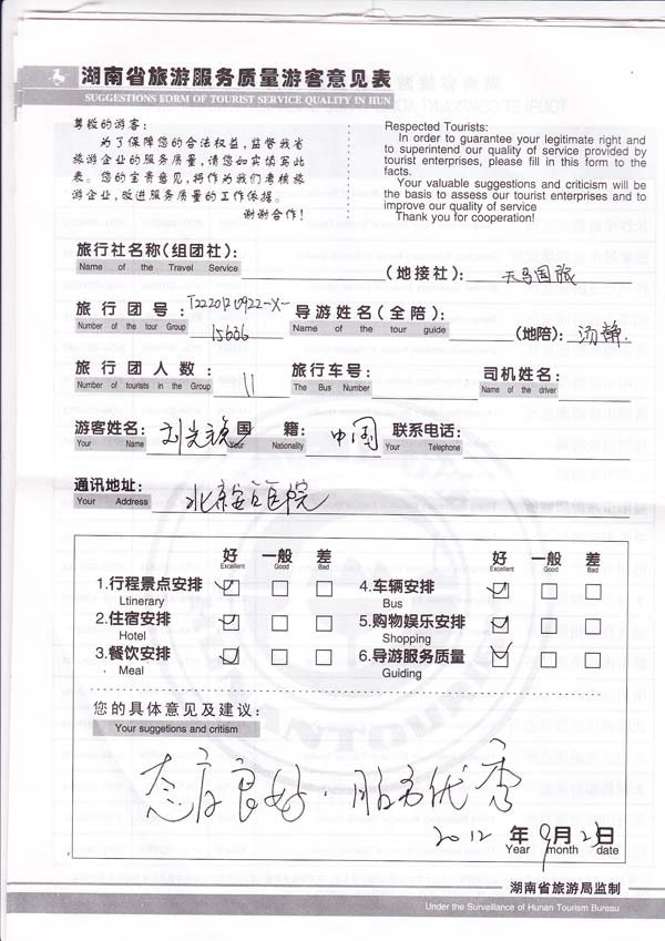 每一条反馈意见均为游客参加我们的团队后的真实填写,其内容真实有效。