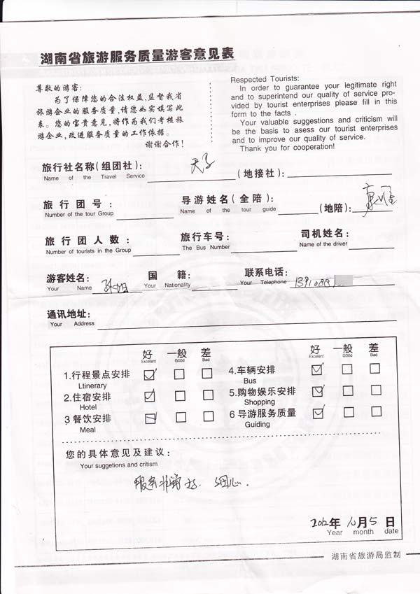 每一条反馈意见均为游客参加我们的团队后的真实填写,其内容真实有效。