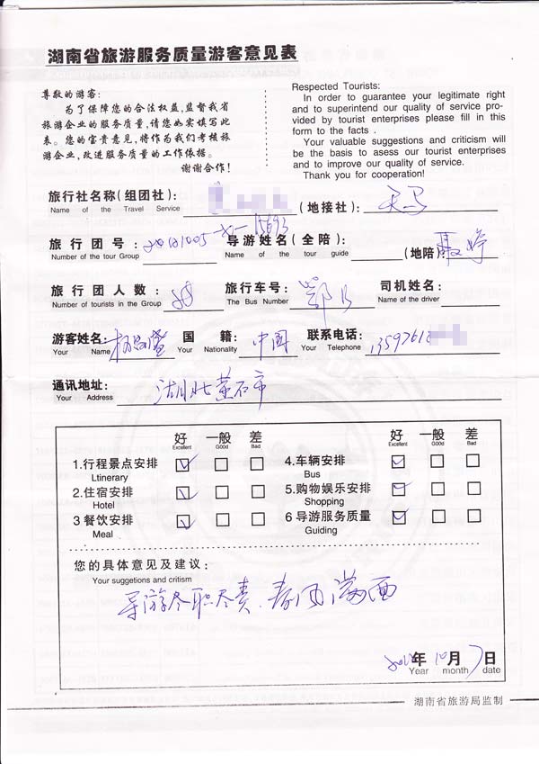 导游尽职尽责,春风满面。[我社反馈]感谢杨先生一行参加我社组织的旅行团队及服务,感谢对我社的好评,欢迎再来美丽的张家界旅游。