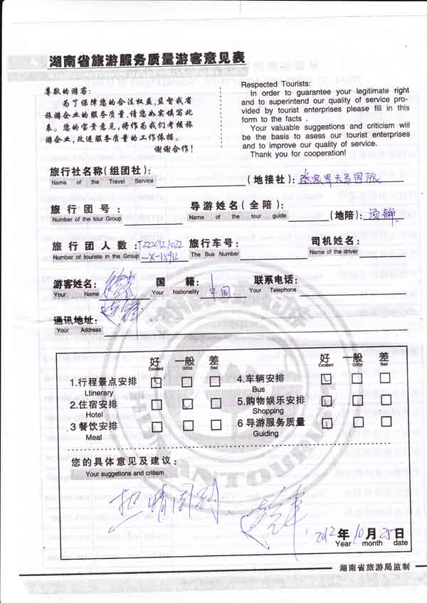 服务热情周到。:[我社反馈]感谢连先生一行对我社的反馈与信任、好评,欢迎再来美丽的张家界旅游。