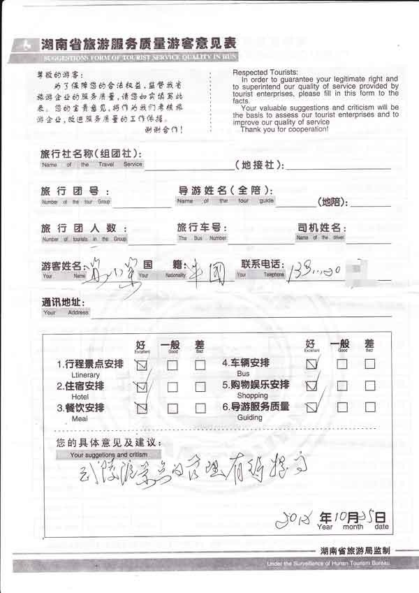 每一条反馈意见均为游客参加我们的团队后的真实填写,其内容真实有效。