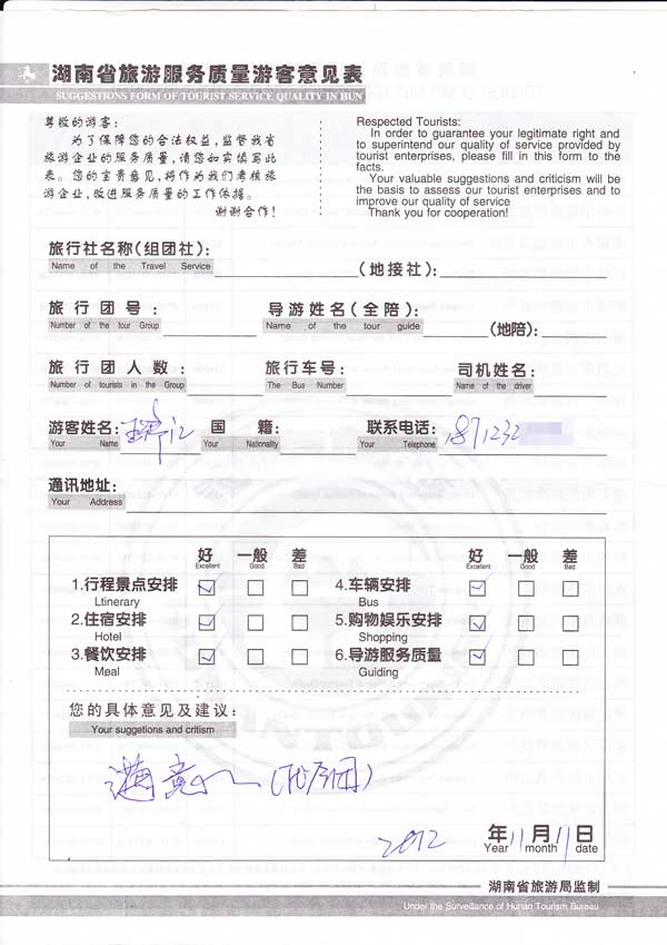 每一条反馈意见均为游客参加我们的团队后的真实填写,其内容真实有效。