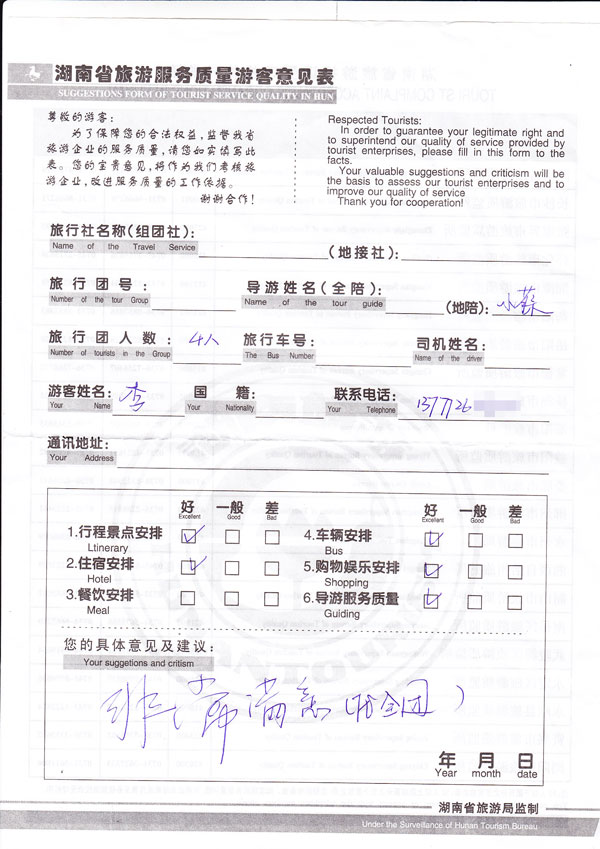 每一条反馈意见均为游客参加我们的团队后的真实填写,其内容真实有效。