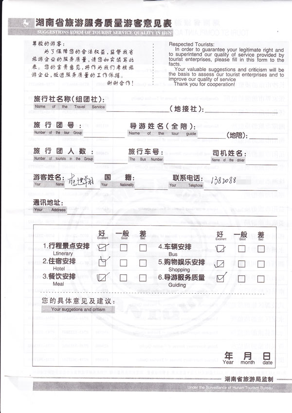 游客反馈扫描图: