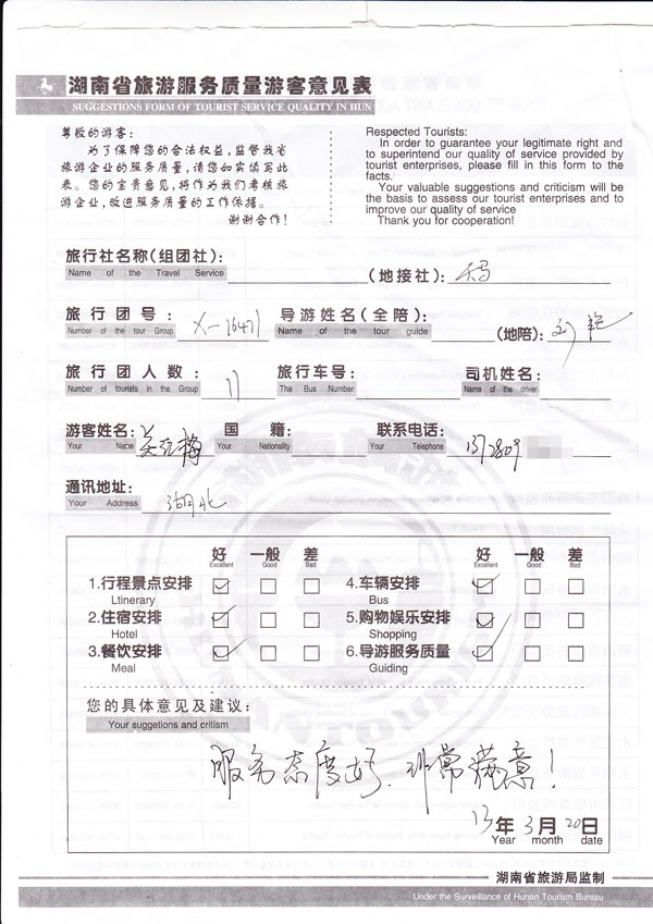 游客反馈扫描图: