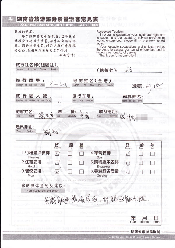 每一条反馈意见均为游客参加我们的团队后的真实填写,其内容真实有效。
