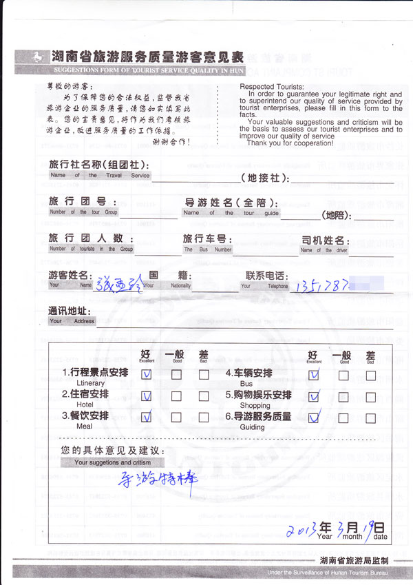 每一条反馈意见均为游客参加我们的团队后的真实填写,其内容真实有效。