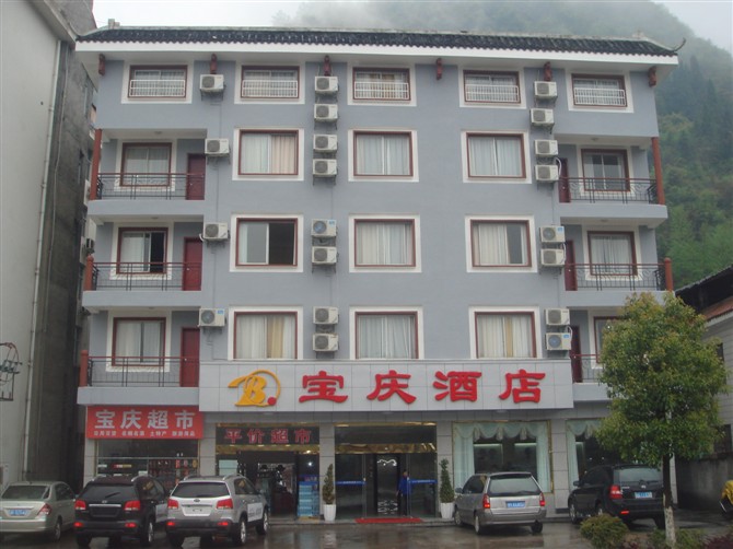 地址: 武陵源区宝峰路(大鲵科技馆正对面)简介:张家界武陵源宝庆酒店地处武陵源风景区,位于张家界市武陵源区宝峰路大鲵科技馆正对面,地理位置优越,闹中取静,环境舒适,旅游交通十分便利。酒店装修简约时尚,舒适温馨。张家界武陵源宝庆酒店主楼高5层,拥有而开发62余间,双标间、标间房、等多种房型供客人选择,房间设施齐全。并且还为客人提供送餐服务、叫醒服务、免费停车、房间无线上网(免费)、外币兑换等服务设施,以满足不同客人的需求,是商务旅行、家庭度假的理想选择。酒店开业时间2011年03月,主楼高5层,客房总数62间(套)。