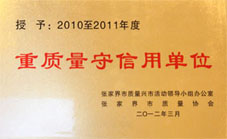 张家界市2010至2011年度重质量守信用单位