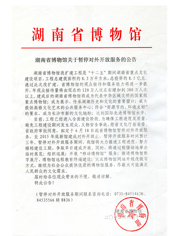 湖南省博物馆改扩建通知