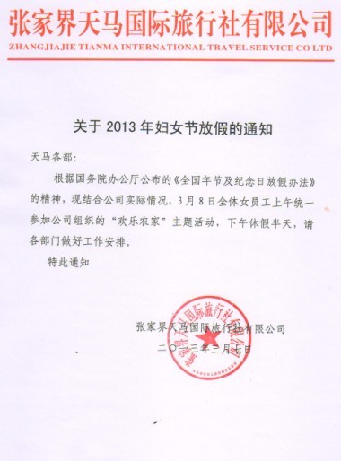 关于2013妇女节放假通知