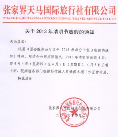 关于2013年清明节放假通知