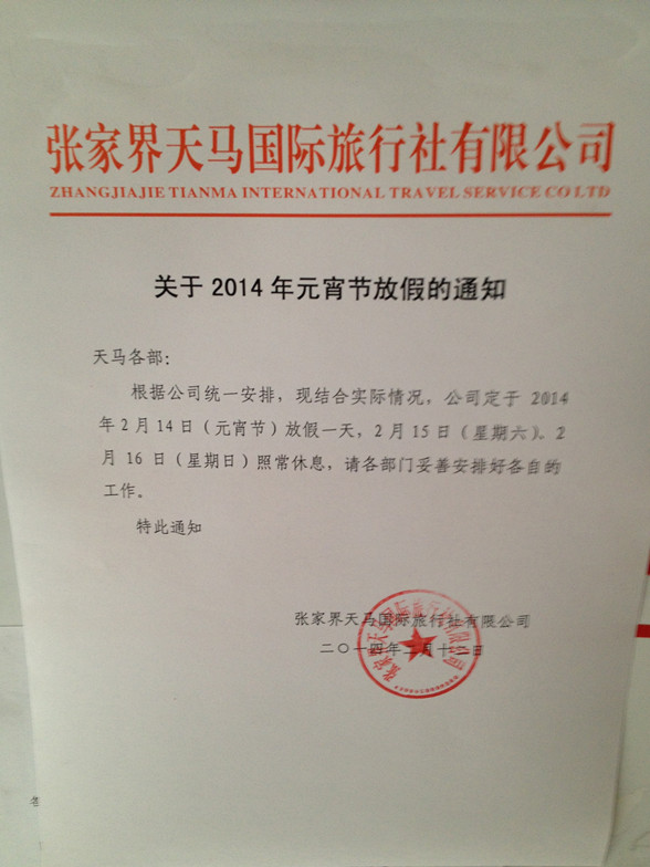 2014元宵节放假通知