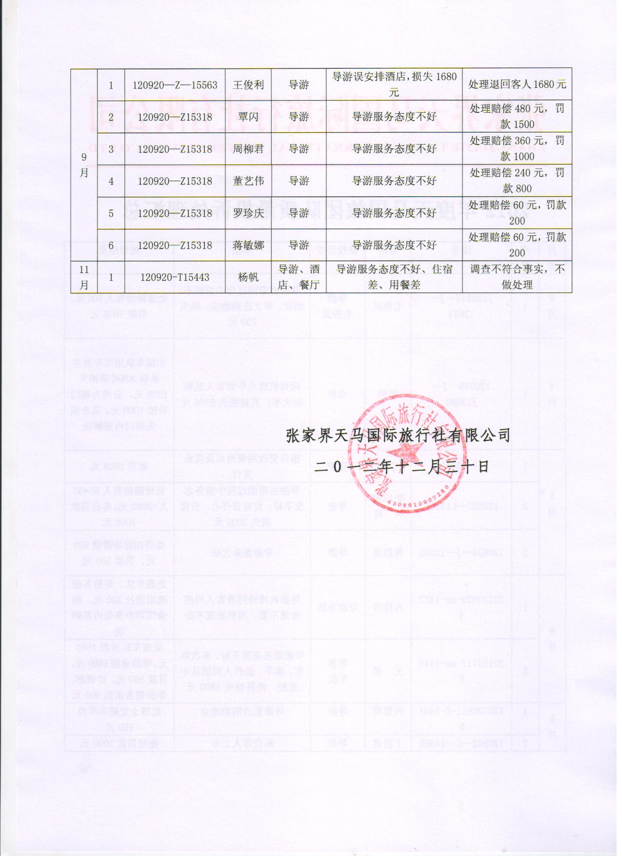 12年4月天马国旅旅游团队质量投诉处理通告