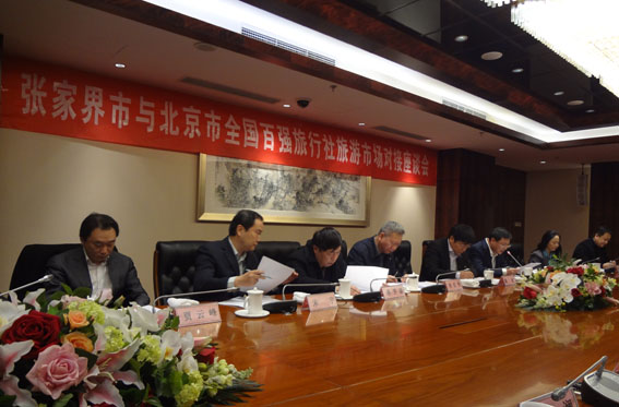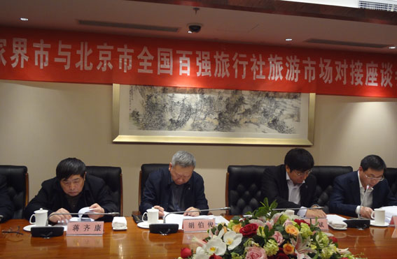 3月15日,市委书记胡伯俊在北京主持召开“张家界与北京市全国百强旅行社旅游市场对接座谈会”,就进一步深化张家界与北京市全国百强旅行社旅游合作、搞好旅游市场对接、推进旅游综合改革等问题,听取了北京市的全国百强旅行社老总的意见。国家旅游局、中国旅游研究院、中国旅游协会、北京市旅游发展委员会相关领导出席会议。